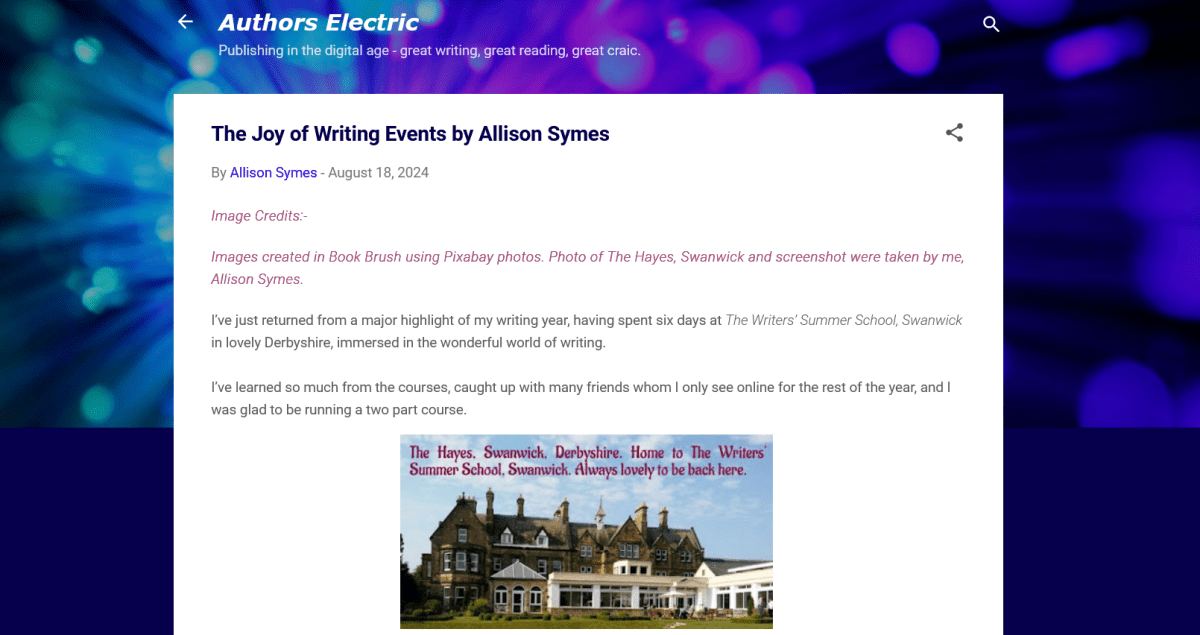 Allison Symes shares her Facebook author page blogs, her website posts and Chandler's Ford Today magazine articles with links. She also blogs about her writing journey and shares thoughts and hints on flash fiction.