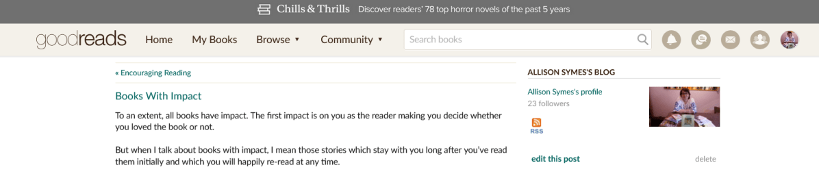 Screenshot 2024-10-05 at 17-43-41 Allison Symes’s Blog – Books With Impact – October 05 2024 09 43 Goodreads