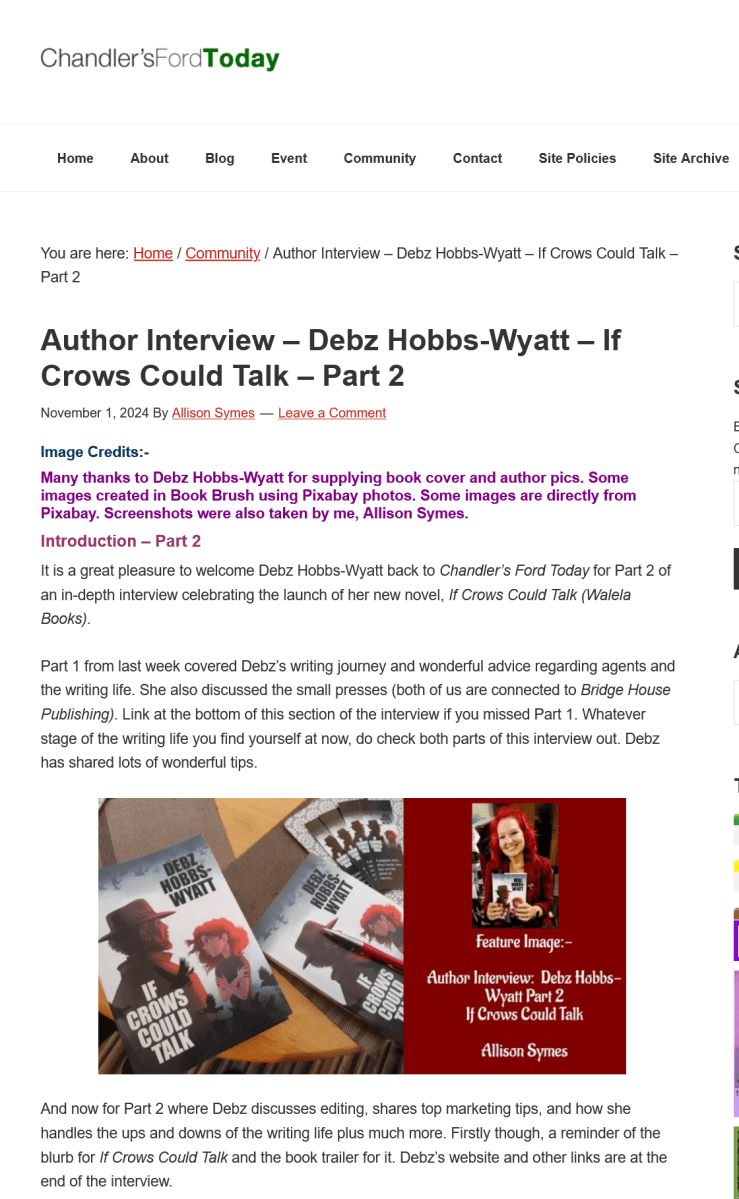 Screenshot 2024-11-01 at 10-02-25 Author Interview – Debz Hobbs-Wyatt – If Crows Could Talk – Part 2 – Chandler’s Ford Today