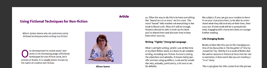 Allison Symes shares her Facebook author page blogs, her website posts and Chandler's Ford Today magazine articles with links. She also blogs about her writing journey and shares thoughts and hints on flash fiction.