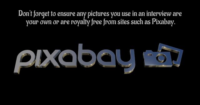Ensure any pictures you use in interviews are your own or are royaly free from sites like Pixabay