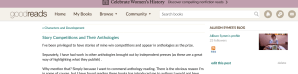 Has been a nice week so far. Hope to look at competitions again at the weekend as I am actively trying to submit more flash pieces to more competitions this year. Not doing badly so far.
