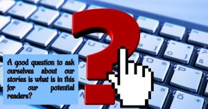 Marketing Tip: Whenever you are sharing information about your latest story or book, think about what is in this for your readers. This is where sharing an odd story or two is handy because it makes perfect sense to say hello, this is what I write, and then share a sample of it. Nobody minds a free sample. If you have an author newsletter, it is a useful thing to include as part of that.