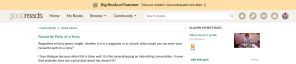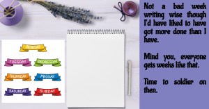 Did manage to get my competition story off during the week, the one I mentioned last weekend. Have another competition to have a crack at – a lovely 750 words one. Plus there is another one which links with a book festival where I can go up to 1000 words.