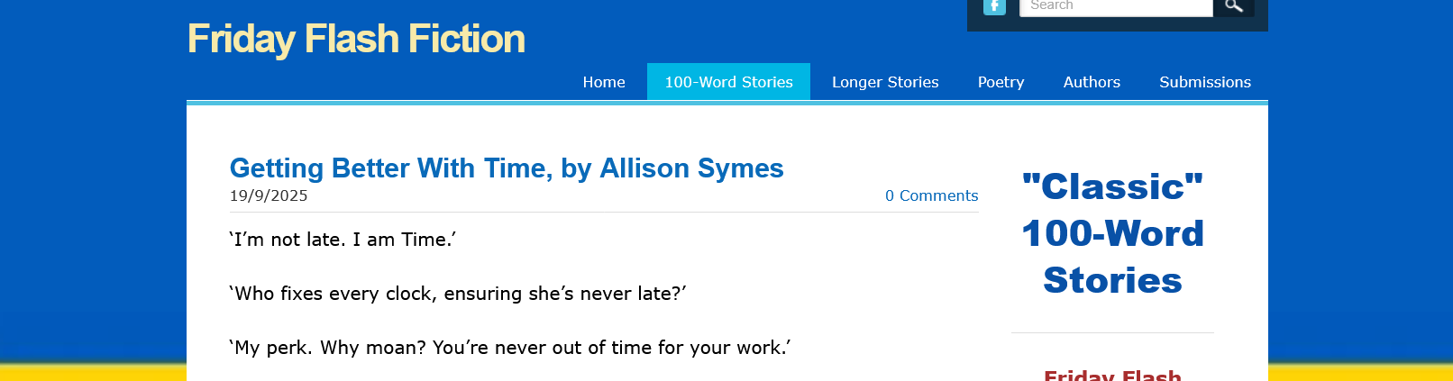 Screenshot 2025-09-19 at 10-10-37 Getting Better With Time by Allison Symes – Friday Flash Fiction