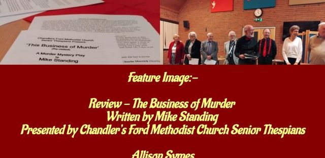 Am delighted to be back on Chandler’s Ford Today with another review. This time I review the murder mystery play, The Business of Murder by Mike Standing, which was recently staged by the Chandler’s Ford Methodist Church Senior Thespians. It was great fun and I look at some of the joys of this kind of play in my review.