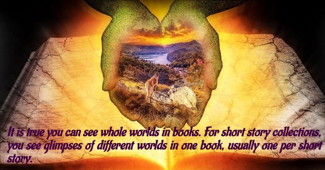 You can see whole worlds in books but for short story collections you see glimpses of different worlds, usually one per story