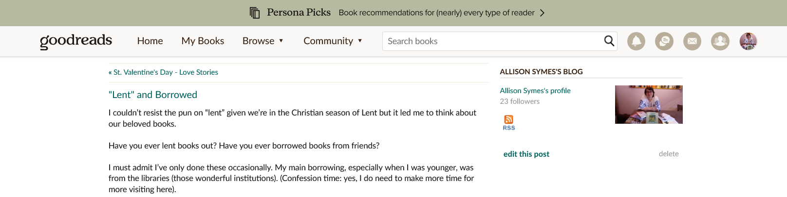 Screenshot 2026-02-21 at 17-37-01 Allison Symes’s Blog – " Lent" and Borrowed – February 21 2026 09 36 Goodreads