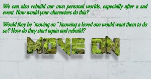 Of course, we can also rebuild our own personal worlds, especially after a sad event. How would your characters do this? Would they be “moving on “ knowing a loved one would want them to do so? How do they start again and rebuild? What help is available to them? Is your setting/major species broadly sympathetic here or not? Does the culture expect your characters to just get on with life again?