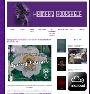 There is still time to get a story in to Hannah Kate for her Spring Equinox show on North Manchester FM. This goes out live on Saturday 21st March but the deadline for submissions is 16th March. See the link for more information and good luck if you give this a go. I’ve had a couple of festive flash pieces broadcast here and the show is always good fun to listen to. Why not check it out?
