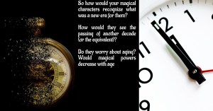 Now I see my next decade as a promising one in that I hope to continue to develop my writing and hopefully have more success with it. But how would your characters see the passing of another decade (or the equivalent)? Do they worry about aging and, if so, why? Would magical powers decrease with age and that is why nobody really wants to think about getting older and what it would mean there? (There are clear parallels with us here).