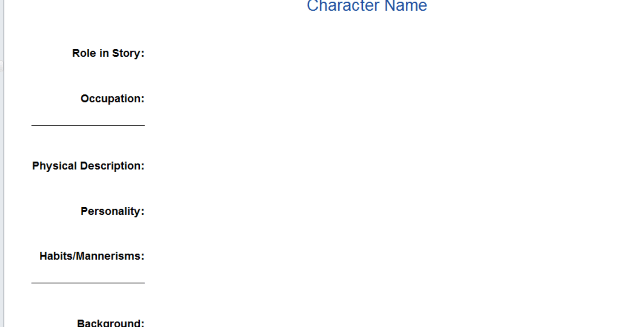 Part of the Short Story Character Preset for you to fill in and create your characters