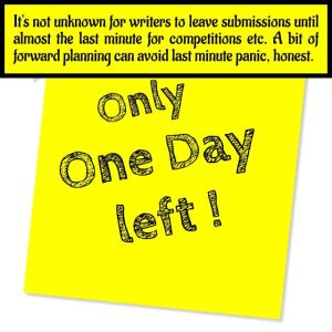Am looking at a story for a flash competition for the end of May. Will be working on it, I hope, tomorrow. This is a story from my “store” and on re-reading it, I can see where I can tighten it up further. This is the purpose of having a break away from something you’ve written. When you do come back to it again, you really do see the piece with fresh eyes and you are much more likely to be able to judge it objectively.